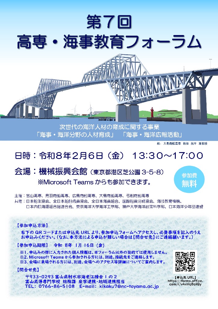 高専は日本独自のユニークな教育機関で、社会が必要とする技術者を育成するため、中学校卒業後の15歳から入学できる5年制の高等教育機関であり、2022年に高専制度創設60周年を迎えた歴史ある教育機関です。実験・実習を重視した専門教育を早期の段階から行うことにより、卒業時には大学と同程度以上の知識・技術が身に付けられるカリキュラムが特長です。
