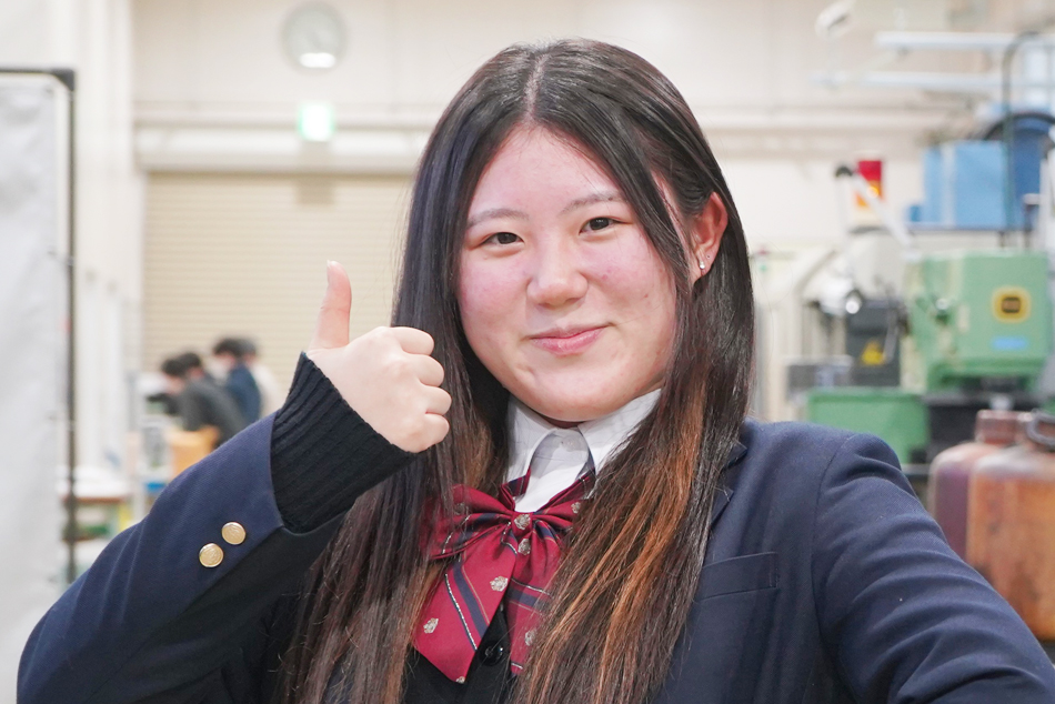 川嶋「私は機械工作実習が好きです。普段の生活では見ないような機械を使って、普段の生活でよく使われる物を作るのがとても楽しく、また班の仲間と一緒に話し合ったり、試行錯誤しながらものづくりを進めていくのが面白いです。」