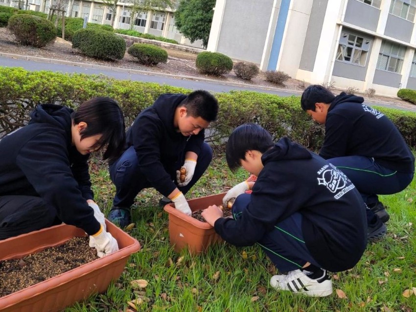 学校緑化推進事業を活用してスイセンの植栽を行いました。
