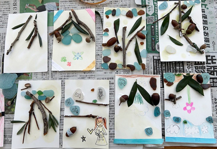 <地域課題解決型 地域教育>平生町総合文化祭で“地域資源のオリーブを使ったハガキ作り”を開催しました