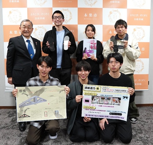 全国高等専門学校デザインコンペティションの報告に本巣市長を表敬訪問