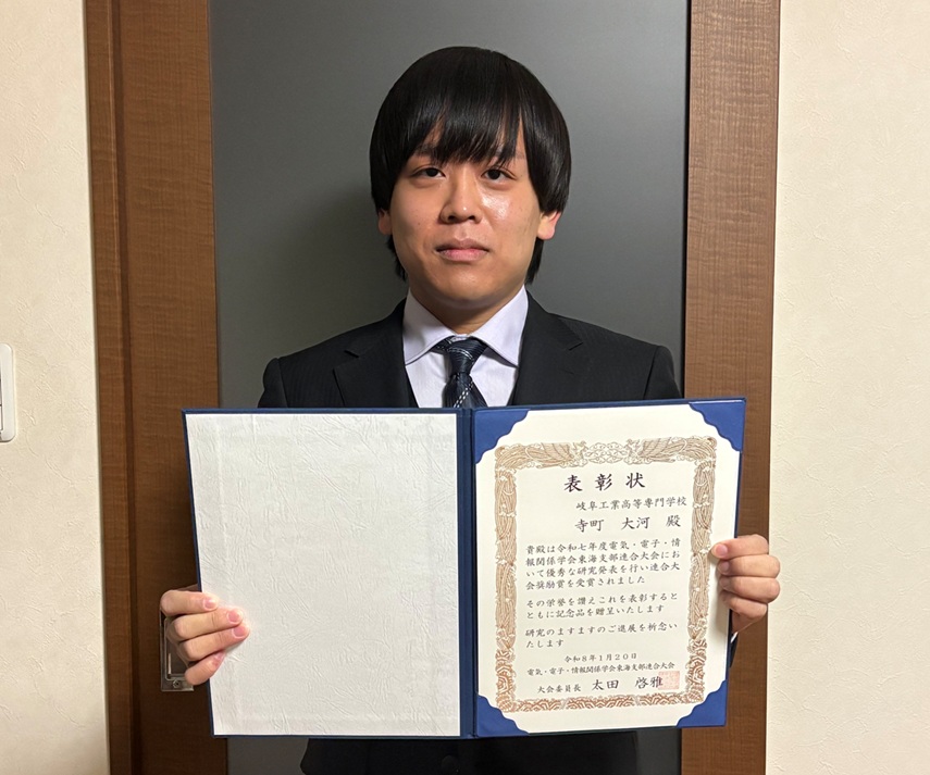 【岐阜高専】専攻科2年寺町大河さんが奨励賞を受賞