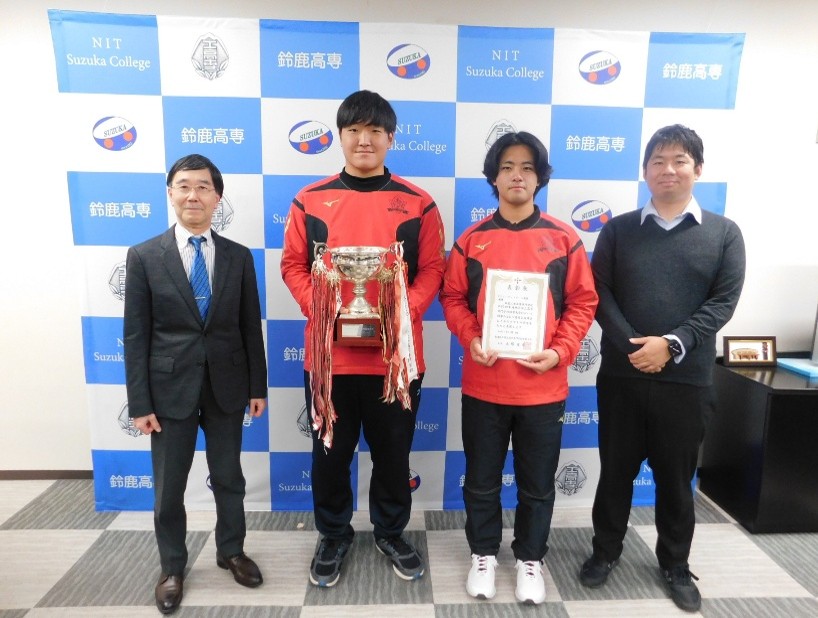 ラグビー部が第63回東海地区国立高専体育大会での優勝を校長に報告