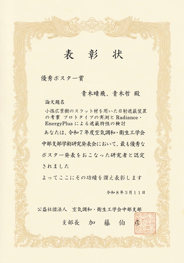 専攻科1年 青木晴飛さんが優秀ポスター賞を受賞